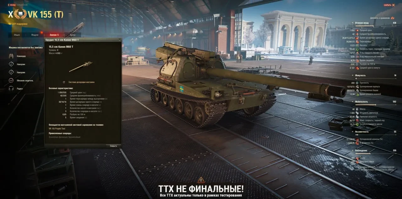 Скриншоты и ТТХ шведской арты 10 уровня VK 155 Projekt на супертесте Мира танков