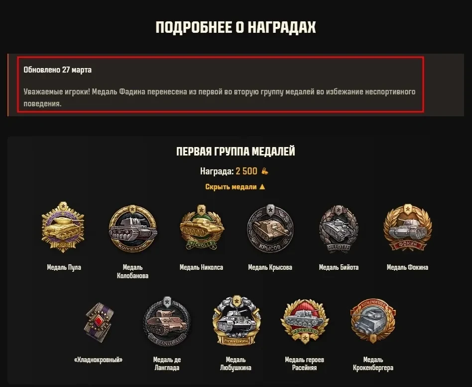 В середине ивента было замечено, что игроки ради медали Фадина (последним снарядом уничтожить последний танк) убирали 90% боекомплекта и ждали конец боя не принимая активного участия в бою, из-за чего создавалась обстановка неспортивного соревнования за победу. Но благодаря оперативной работе разработчиков, проблема была быстро решена и справедливость восстановлена.