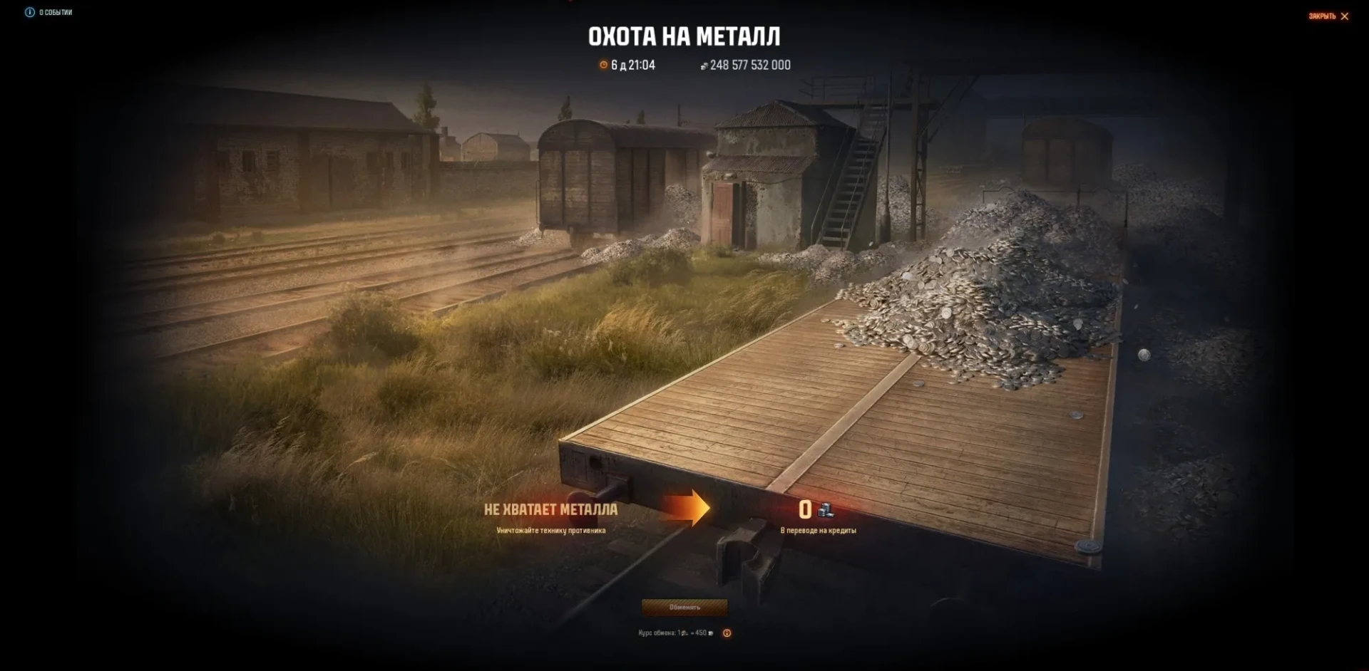 Нужно уничтожать танки противника и обменивать условный "металлолом" на кредиты. Чем тяжелее убиты враг - тем больше кредитов. Всего в общей копилке 250 миллиардов кредитов.