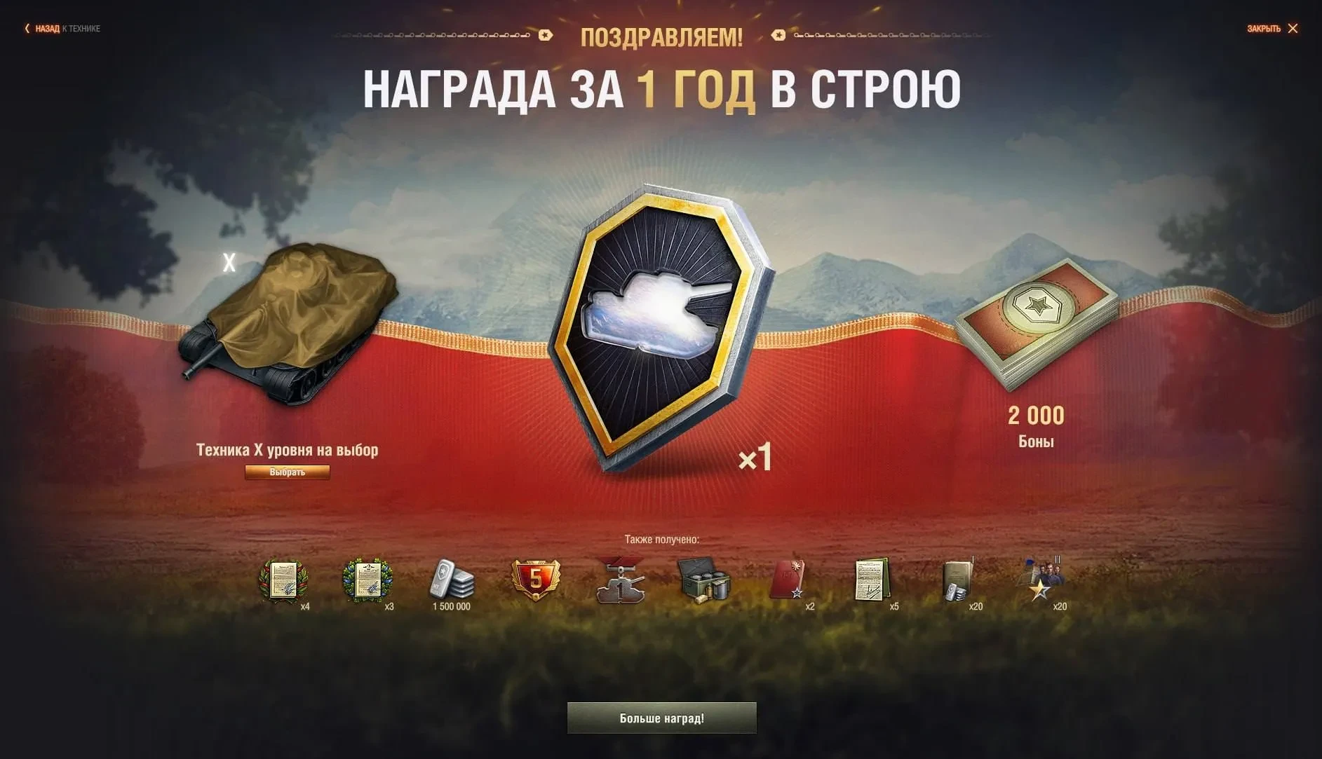 За 15 лет в строю дают 2 танка 10 уровня в заслуженной награде.