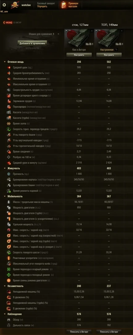 У машины 2 орудия на выбор: 127mm и 149mm.