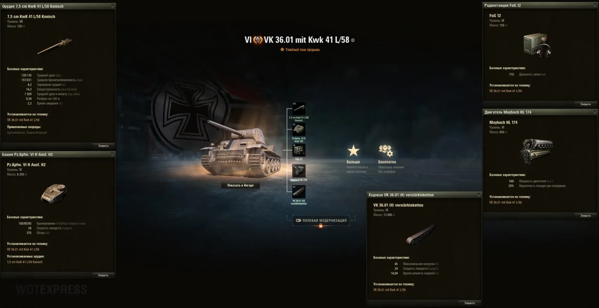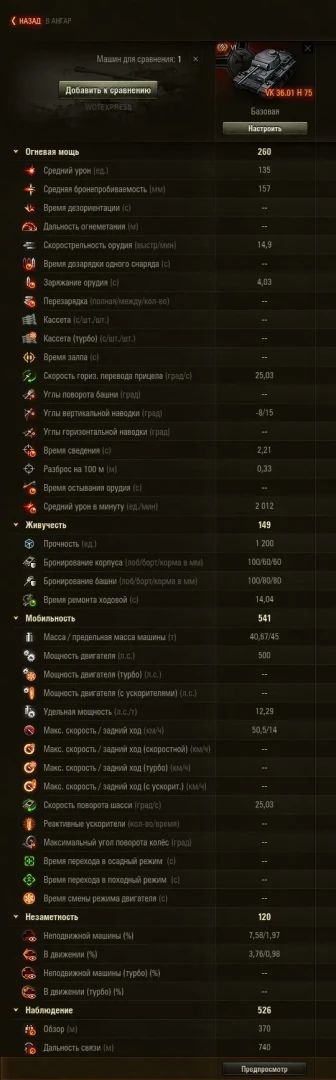 Сравнение характеристик в ТОП комплектации VK 36.01 (H) и VK 36.01 mit Kwk 41 L/58:
