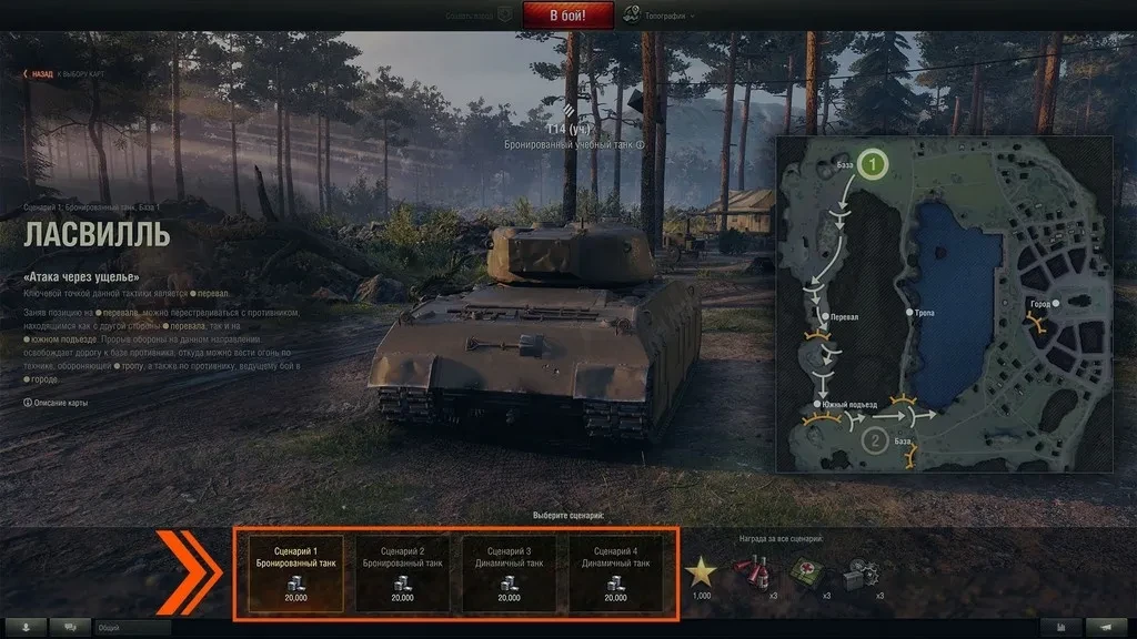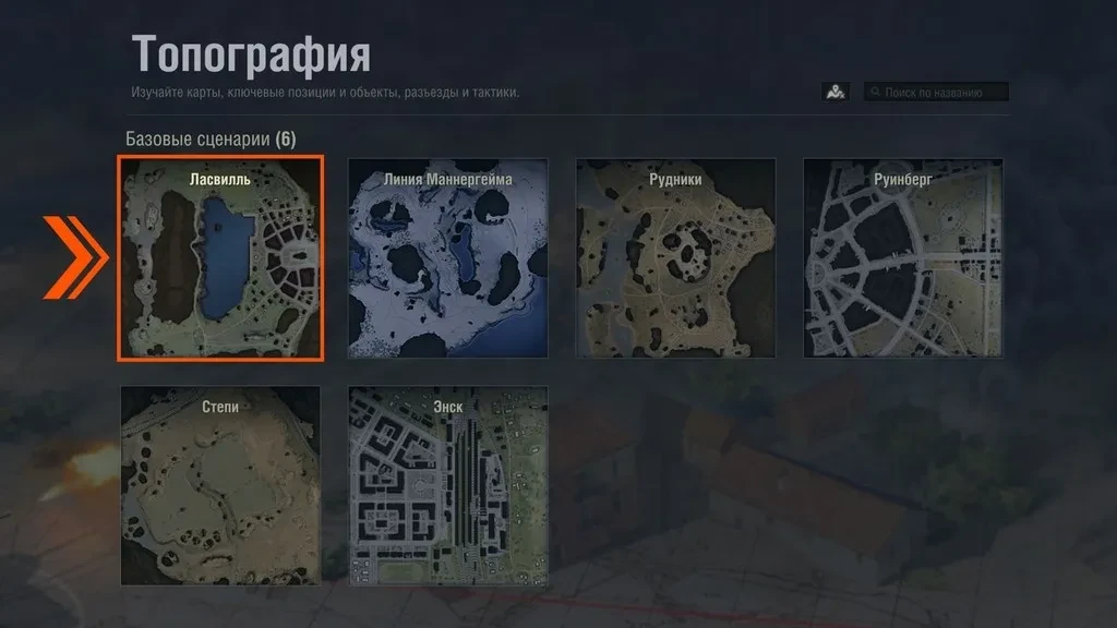 Зайдите в режим «Топография», выберите карту «Ласвилль» и пройдите минимум один раз каждый из четырёх сценариев.