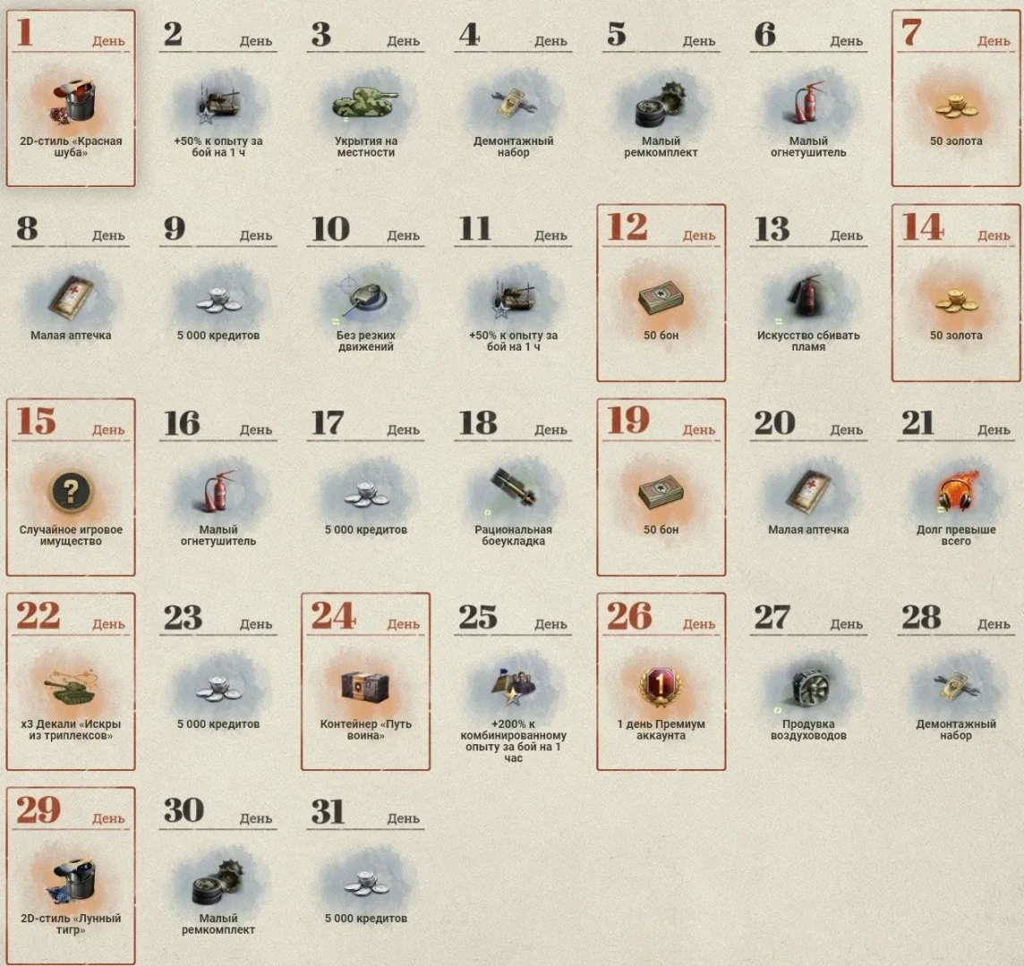 - Если вы забрали награду в календаре, но не зашли в игру до 3:00 (МСК) следующего дня, награда не будет доставлена. Пока вы её не заберёте, награда следующего дня не откроется.