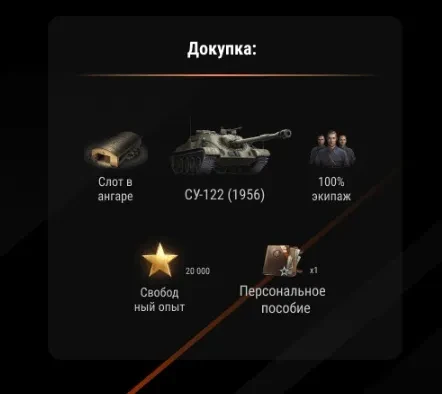 - Нанести 25% от суммарного урона своей команды за бой - Универсальная брошюра (20 000 опыта экипажу)