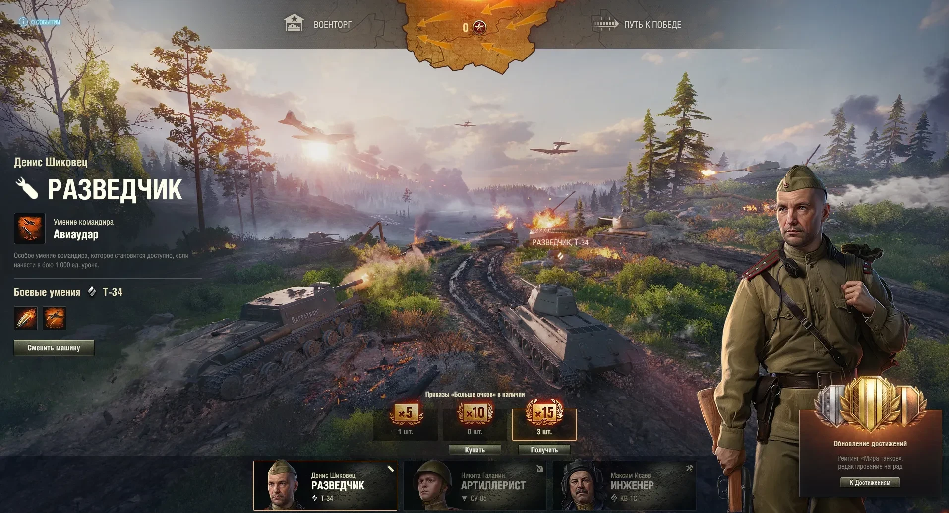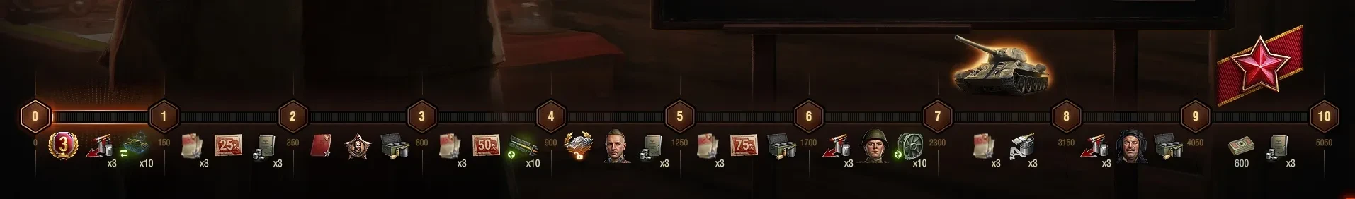 Если не успел пройти прогрессию и получить Т-34М-54, то можно задонатить на машину со скидкой 25% за каждые два закрытых этапа.