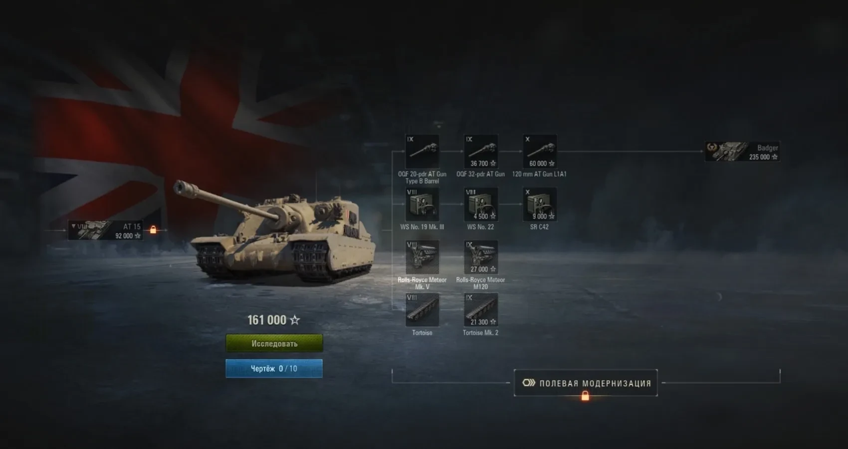 Tortoise. В связи с изменением характеристик топового орудия машины AT-15 была скорректирована последовательность исследования модулей.