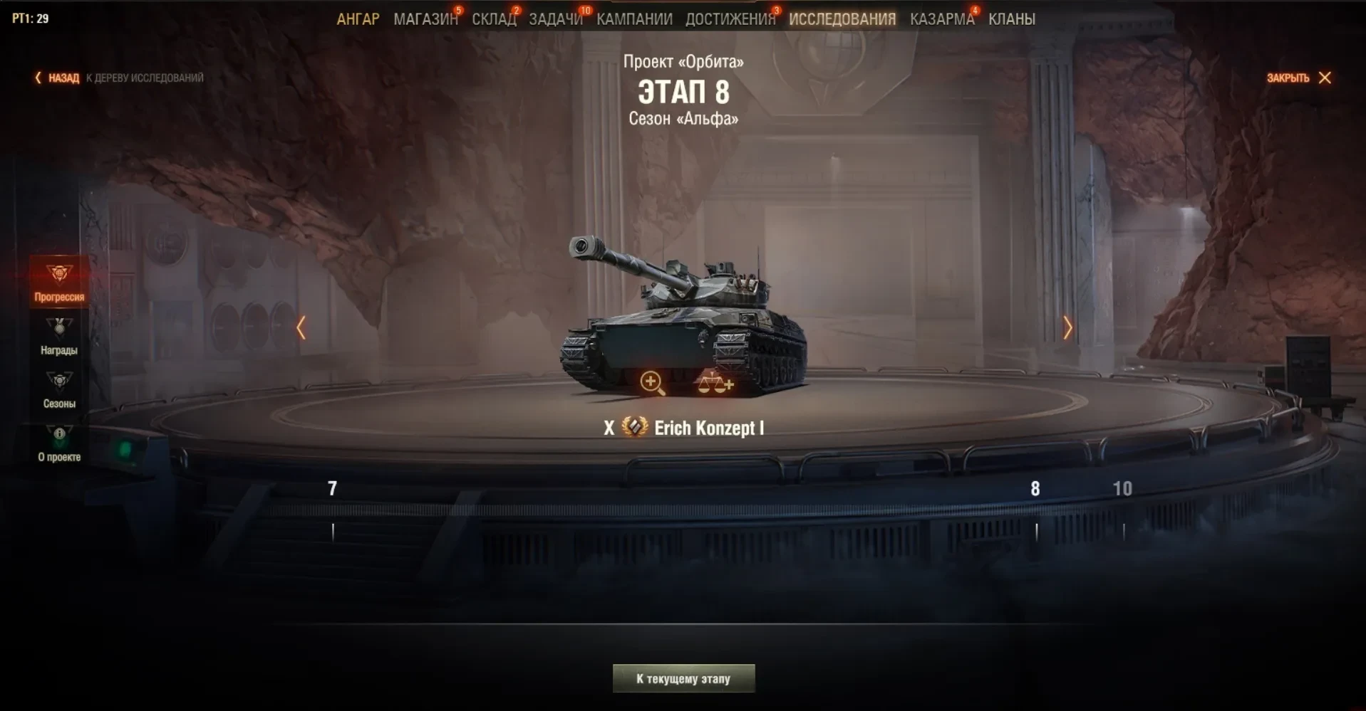 Далее за победные бои на повторно исследованной технике копим очки прогрессии "Орбиты".
