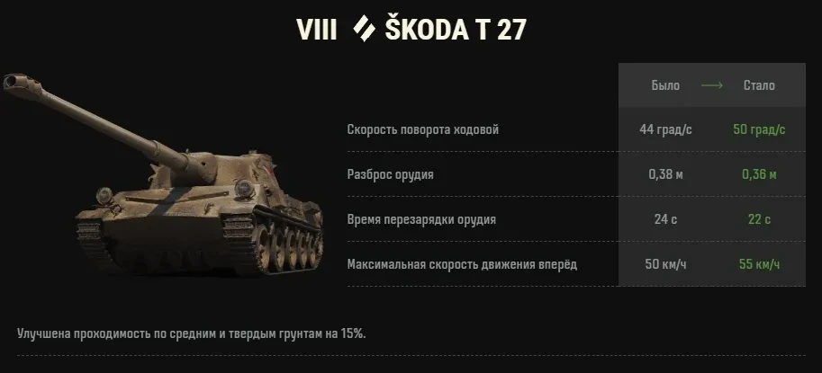 * Машина недостаточно эффективна в сравнении с другими средними танками поддержки. Мы повышаем характеристики мобильности и орудия для большего соответствия ветке чехословацких средних танков.