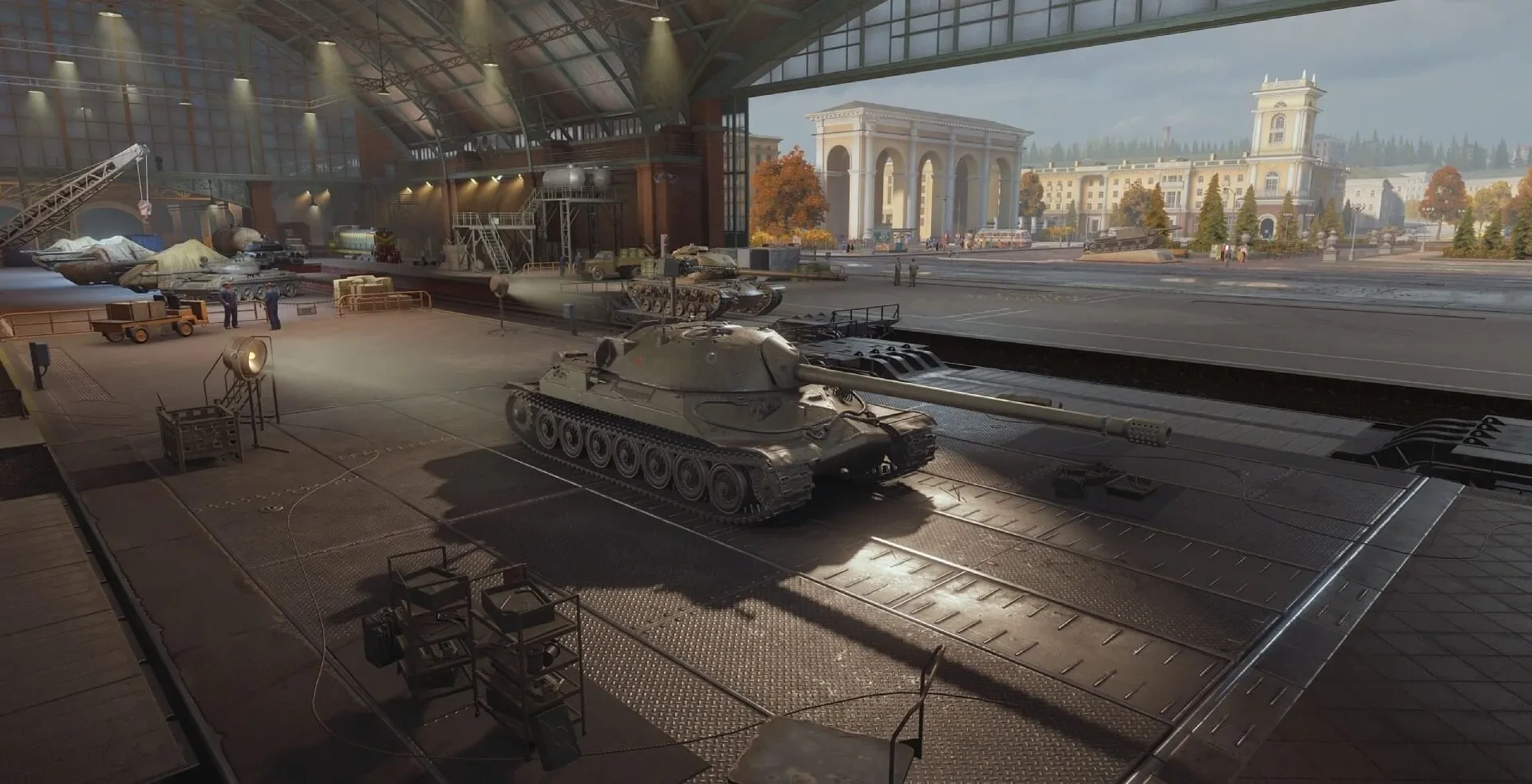 Теперь в ангаре царит осень: жёлтые листья кружатся в воздухе, а солнечный свет ложится тёплым золотом.