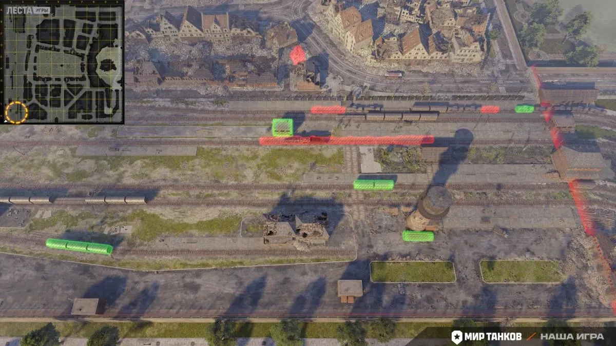 - Квадраты C1-K2, линии 1-2. Изменено расположение вагонов для повышения удобства стрельбы для нижней команды.