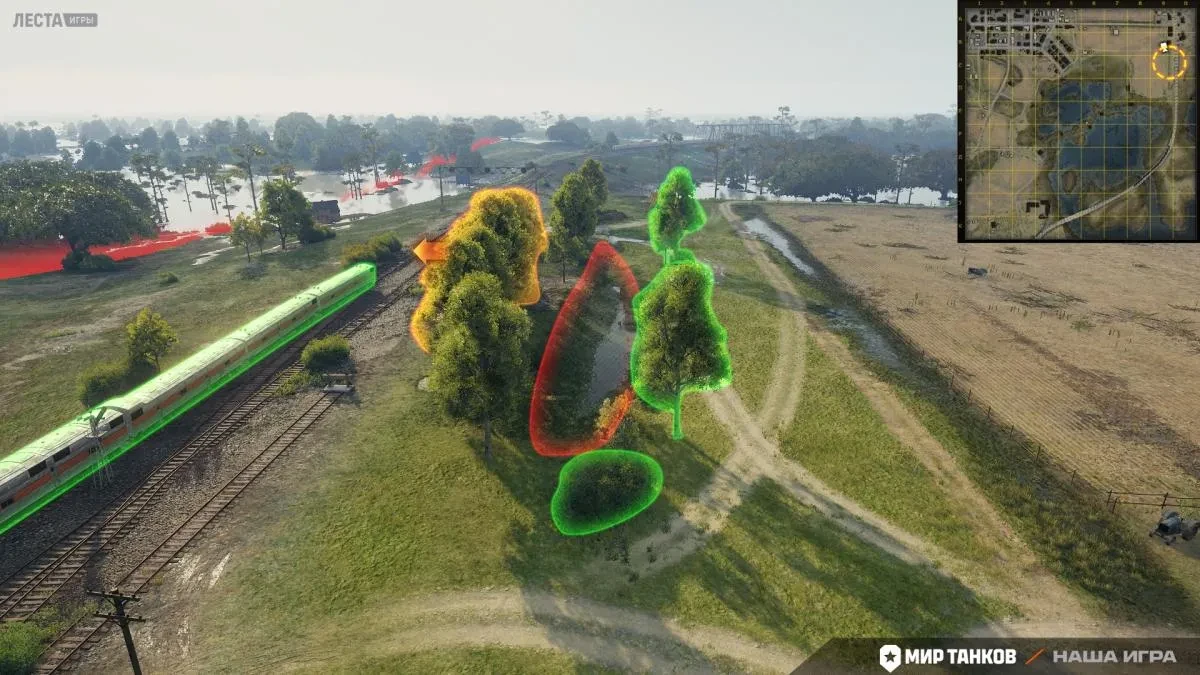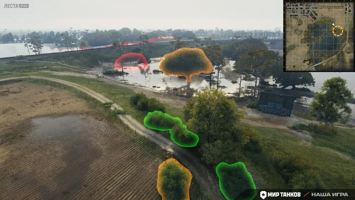 - Квадрат D8. Добавлены элементы растительности для более ранней возможности засвета поджима противника.
