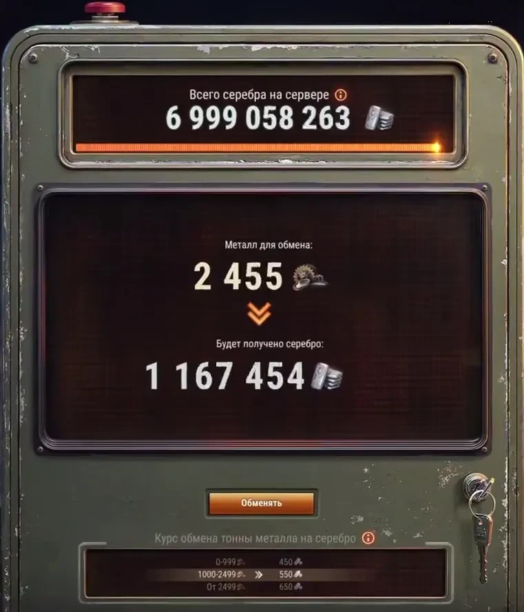Чем больше масса танка, тем больше металла можно получить и, соответственно, серебра.