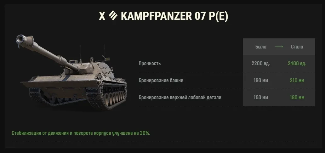 Мы внимательно изучили отзывы и статистику и внесли ряд правок, которые повысят эффективность машины в позиционной борьбе за счёт улучшения показателей бронирования, стабилизации и прочности.