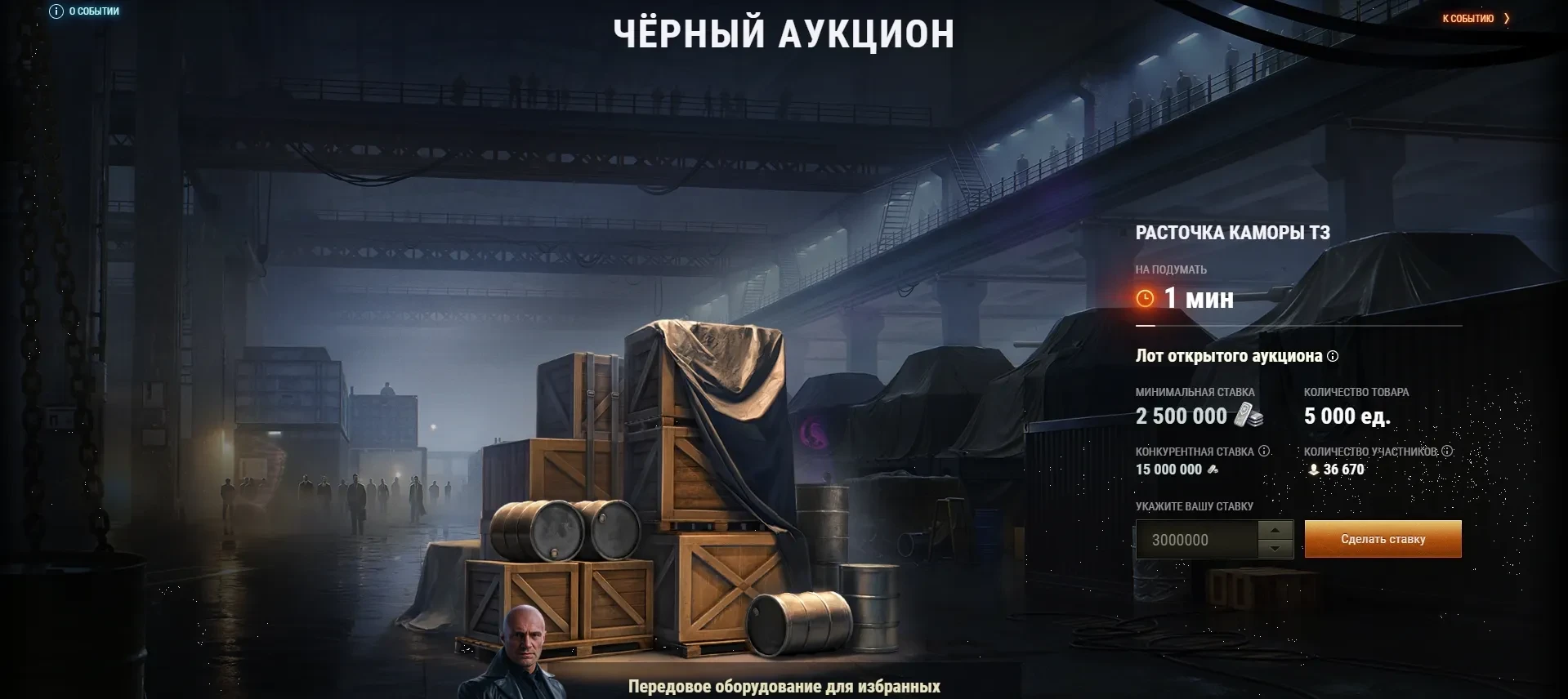 Аукцион на оборудование Расточка каморы Т3 на Черном рынке 2025 в Мире танков завершился.