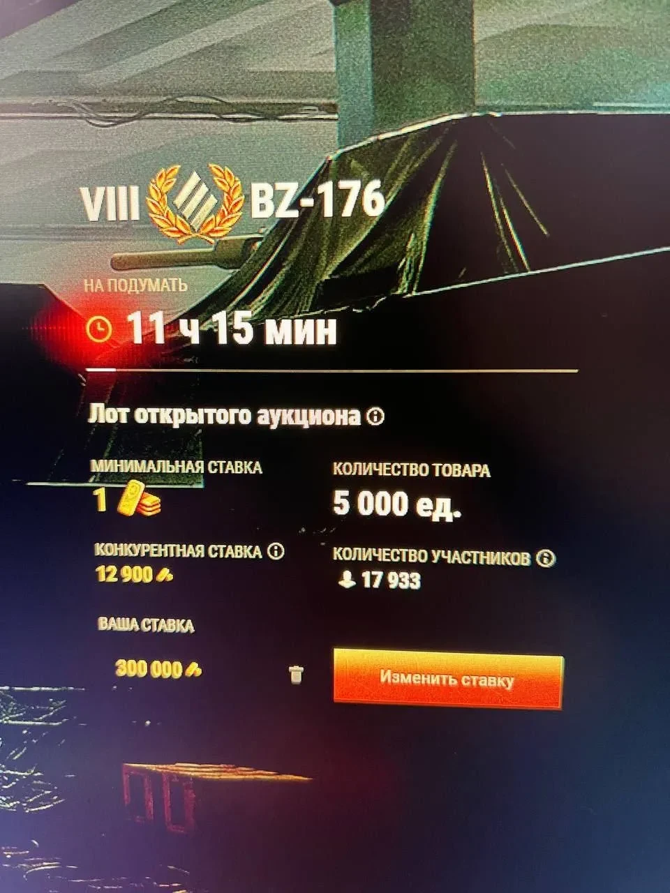 Пятый лот аукциона: BZ-176. Чёрный рынок 2025 в Мире танков