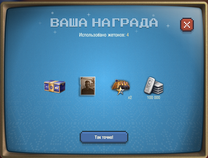 Еще 2 танка выпало из легендарных коробок. Которые, в свою очередь, выпали из казино-автомата за жетоны в прошлый НГ. Т. е. также бесплатно, жетоны крафтились. Причем оба имбы - Ка-Ри и Прога 46. Это был единственный случай за все 11 лет в игре, когда так люто подкрутили мне, а не кому-то там.