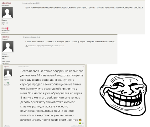 А,ещё сколько лулзов и слёз словил от тех,кто не получил,продал все танки или просрал всю серу.