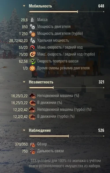 - Максимальная скорость вперёд: 75* / 55 км/ч.