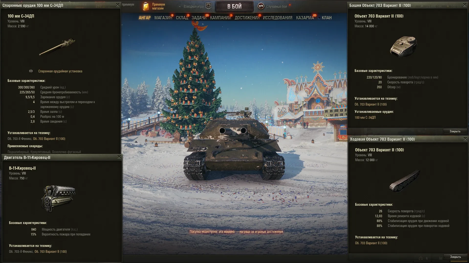 Объект 703 вариант II (100) (СССР, ТТ-8, премиумный). Этот танк впервые появился на супертесте в декабре 2023 года и никогда не продавался. Но в рамках коллаборации Мира танков с группой «Ария» продавался его клон «Феникс» с вшитым очень красивым 3D-стилем (январь 2024 года). Краткое название танка 703 II.