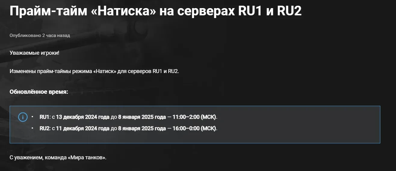 Изменили прайм-таймы «Натиска» для серверов RU1 и RU2.