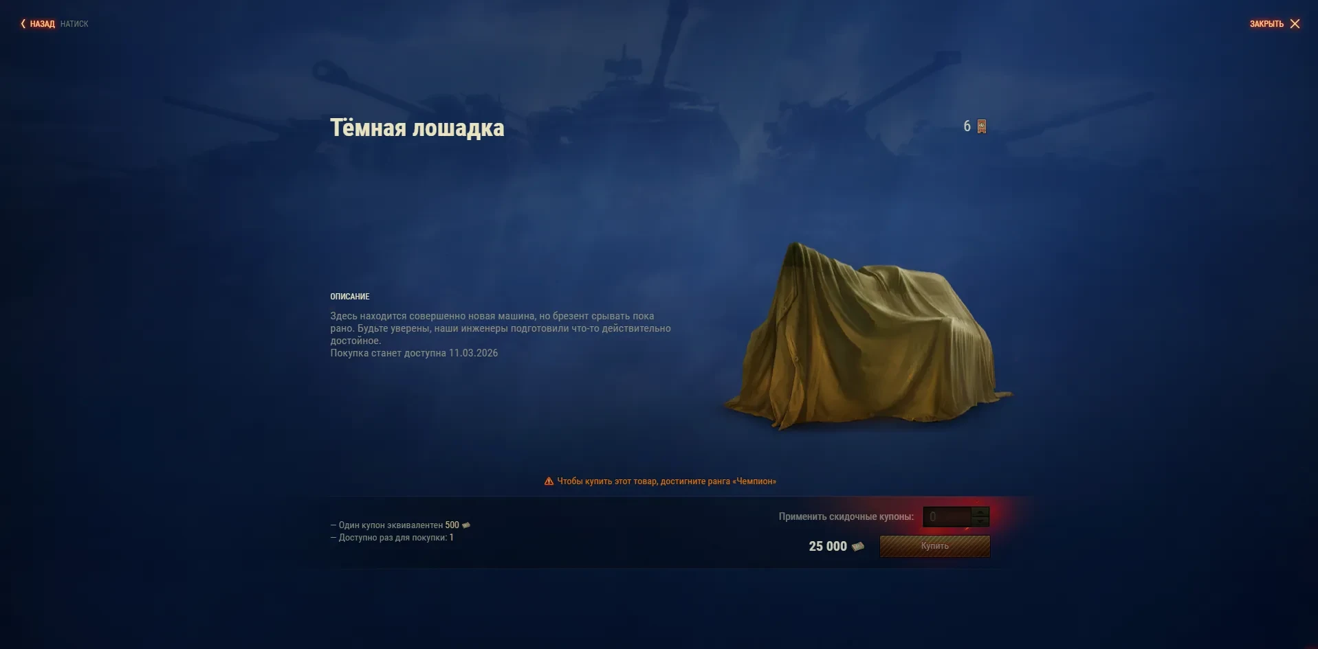 Релиз нового танка в натиске связан с выходом обновления 1.41, запланировано на 11 марта.