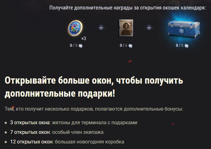 - Если вы забрали награду в календаре, но не зашли в игру до 3:00 (МСК) следующего дня, награда не будет доставлена. Пока вы её не заберёте, награда следующего дня не откроется.