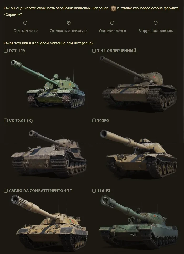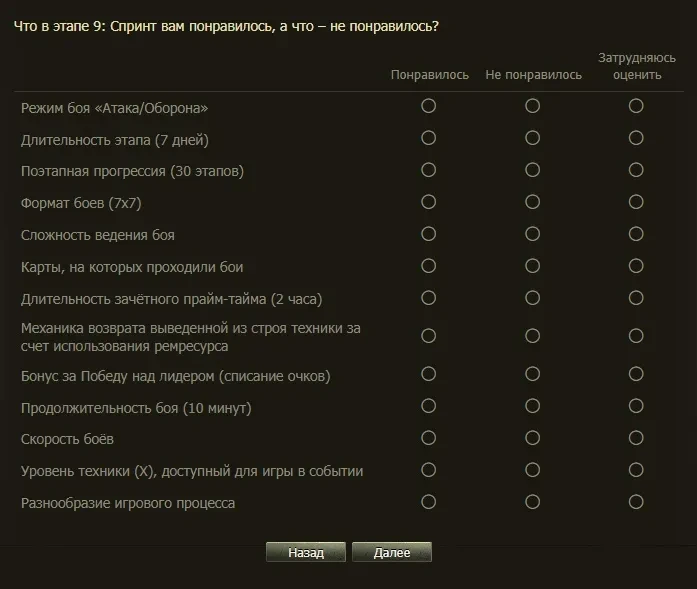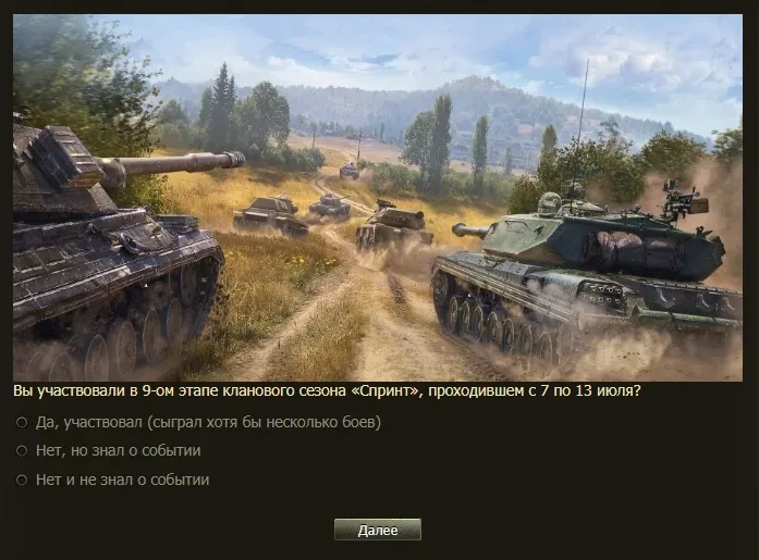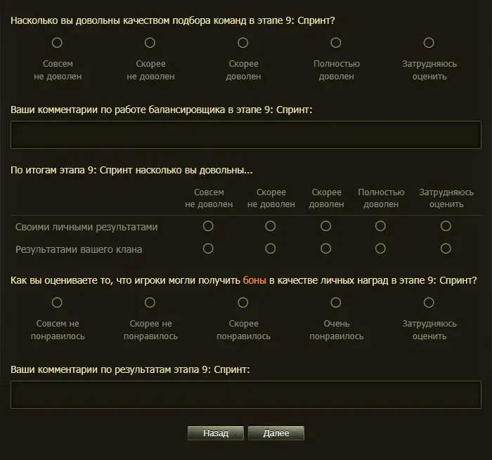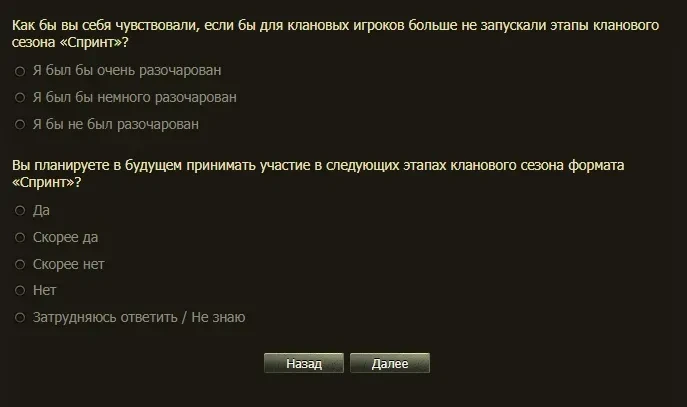 Прислали опросник по 9 этапу кланового сезона «Спринт».