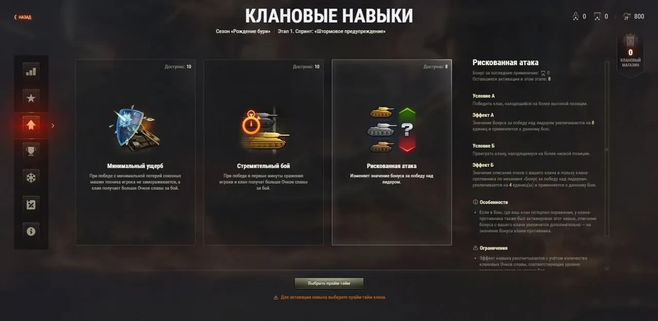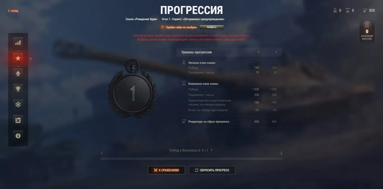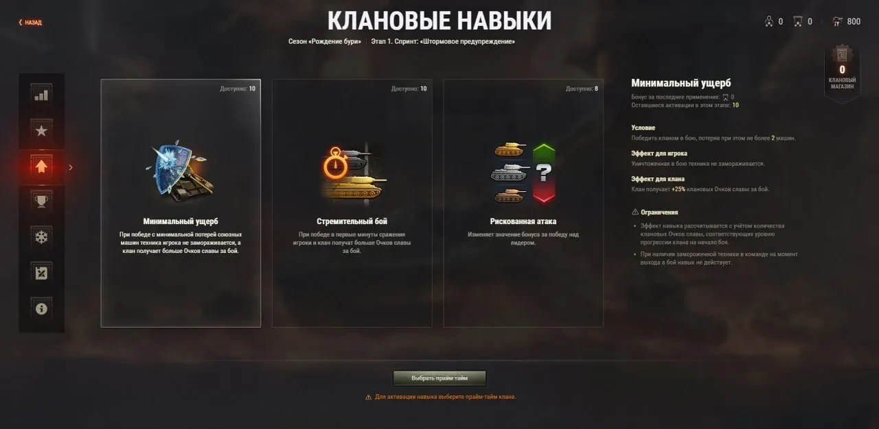 - Минимальный ущерб: при победе с минимальной потерей техники игрок не замораживается, а клан получает больше Очков славы;