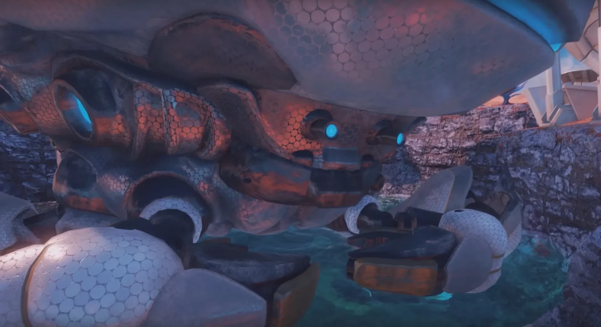 Нам предстоит сталкиваться с другими машинами и собирать информацию в кораллах, и в зоне сканирования — гигантский краб.