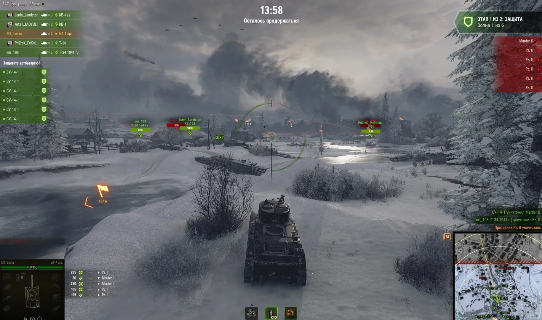 - Нужно было защищать арту, но она и сама себя неплохо защитила, когда к ней проехал вражеский ЛТ. Пока живы вражеские артнаводчики игра не дает стоять. Постоянно попадаешь под артудар и приходится очень быстоо сниматься с места, буквально за две секунды.