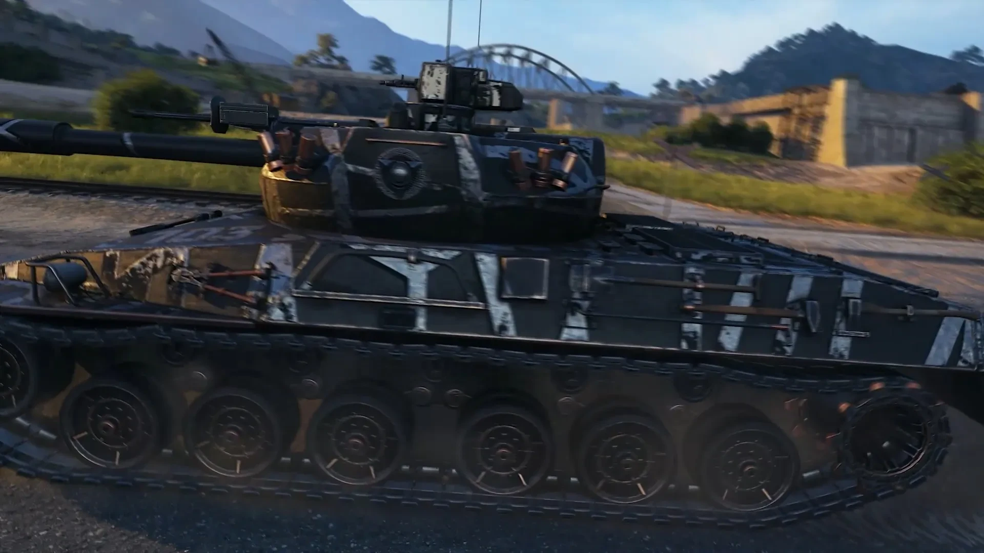 «Средний танк, оснащённый гидроподвеской и орудием с магазином заряжания. Отлично справляется с ролью машины поддержки, благодаря показателям мобильности и небольшим габаритам. Магазин на три снаряда и хорошая точность позволяют держать в напряжении противника и не подпускать его к занятым рубежам»