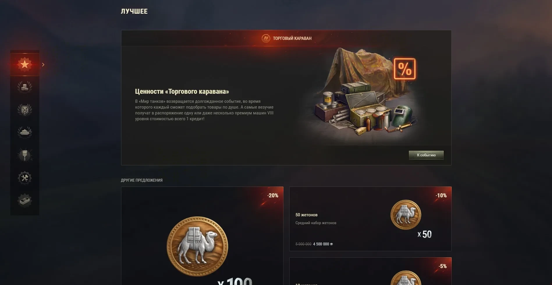 Если предложение Торгового каравана вам не нравится, его можно заменить за кредиты (придётся оплатить полную стоимость набора) или со скидкой + специальные жетоны. 3 жетона можно залутать за выполнение БЗ, остальные придётся докупать за кредиты во внуригровом магазине