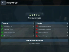 В профиле каждого игрока появится «Воинская честь». Изначально она равна 3 звёздам. В зависимости от оценок других игроков шкала постоянно меняется и может принимать значения от 0 до 5 звёзд.