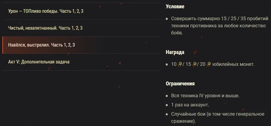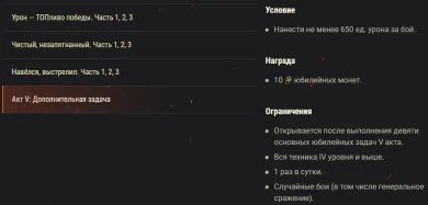 Акт V. Юбилейные боевые задачи в World of Tanks