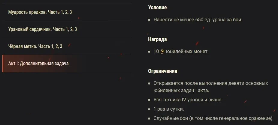 * Все три блока задач выполняются параллельно. После выполнения всех юбилейных задач станет доступна дополнительная ежедневная задача, которую можно будет выполнить один раз в день.