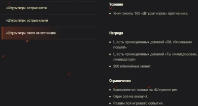 Выполнение этих задач принесёт вам отличные награды: уникальные декали двух видов, классные надписи, эксклюзивную медаль, специальную эмблему.
