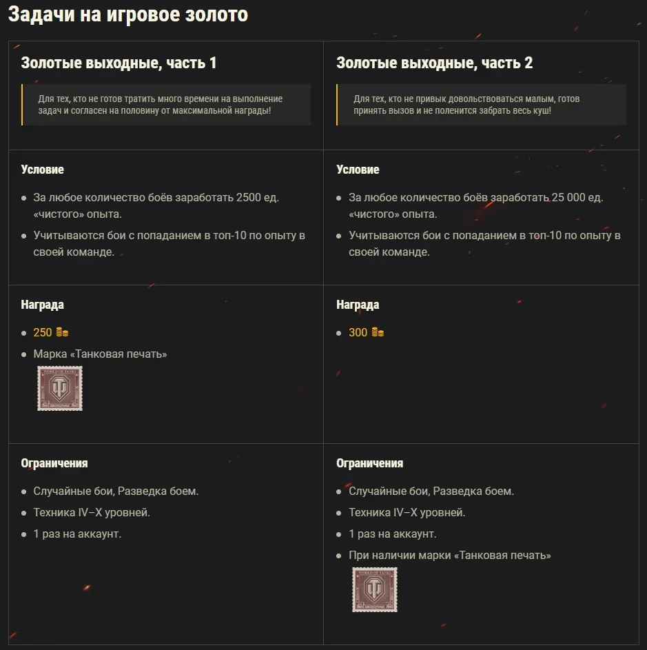 * Награды за выполнение боевых задач суммируются при соблюдении всех условий и ограничений.