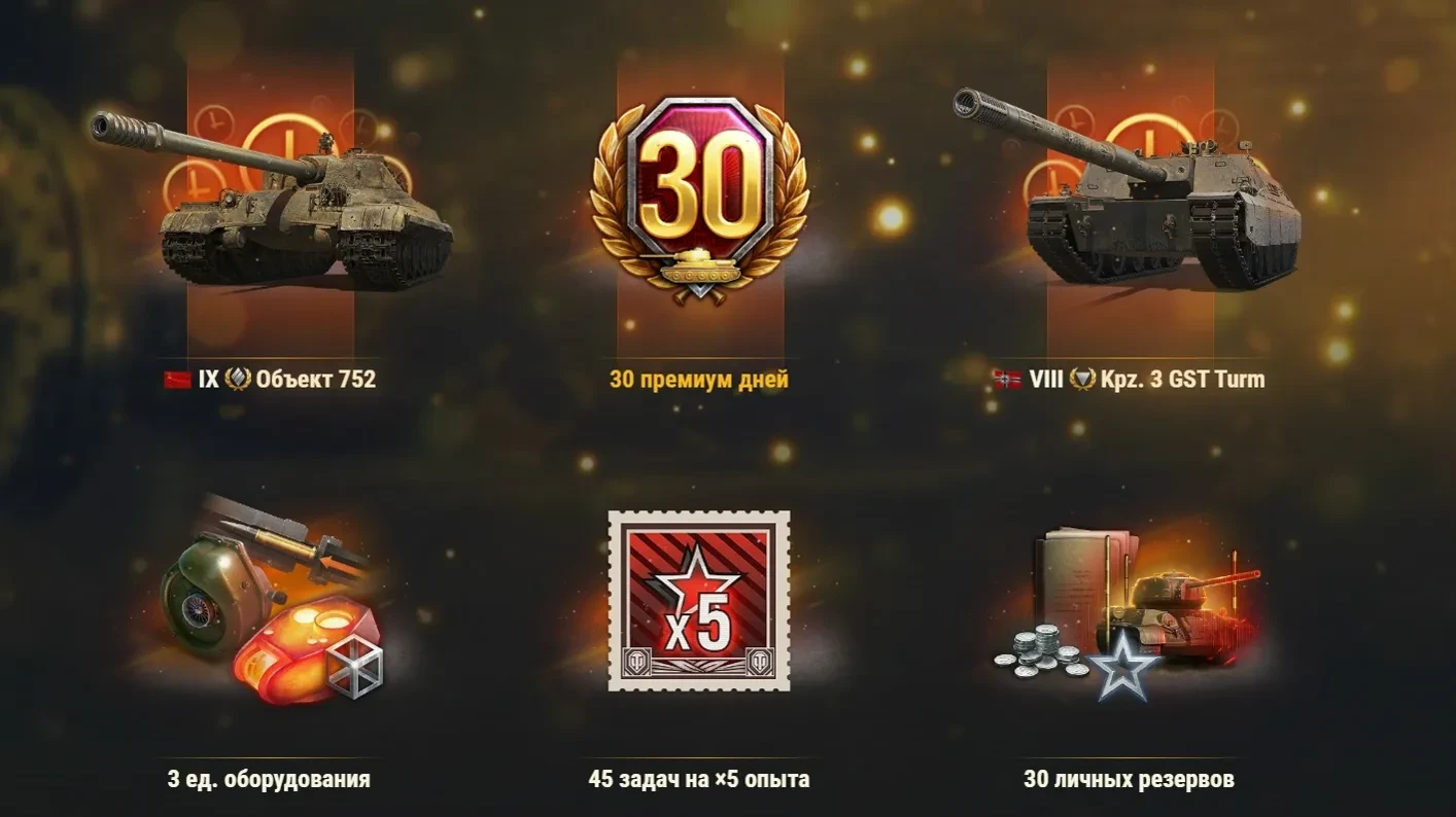 Не играл в World of Tanks более 60 дней? Зайди в игру и получи набор имущества для возвращения, который поможет быстрее освоиться и прокачать новые XI уровни. В состав входит: