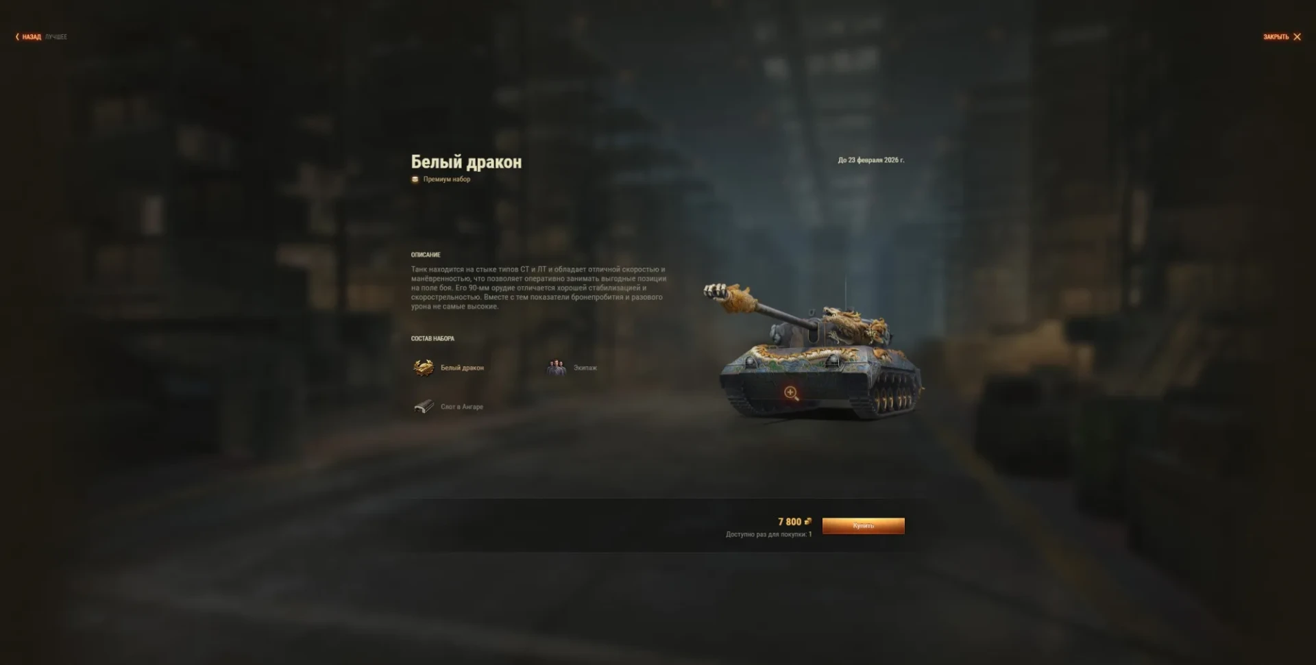 На аукционе 2025 можно было приобрести один из двух новых танков: Белый дракон или Каменный страж.