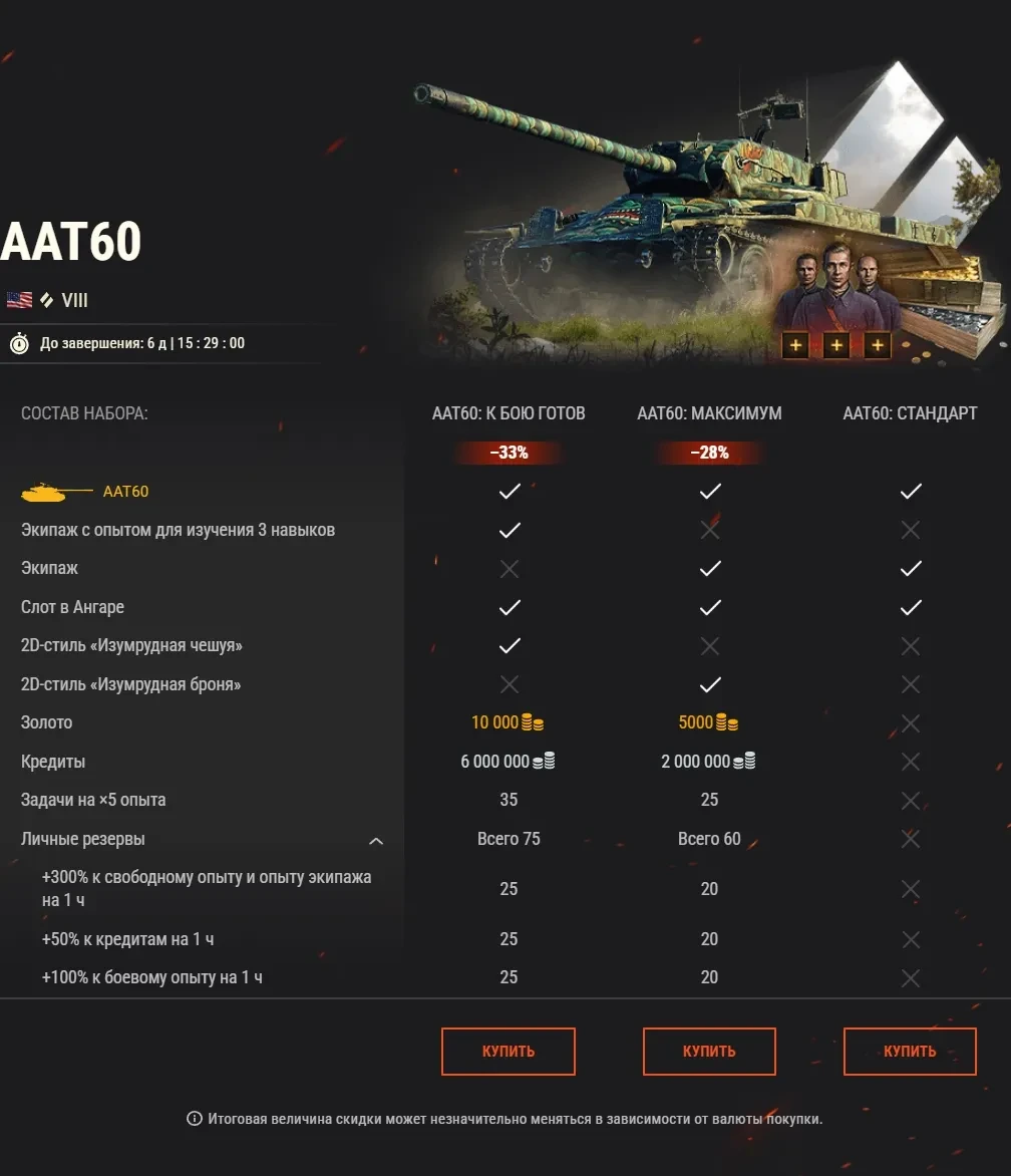 Сейчас отличное время, чтобы пополнить Ангар! Выберите одну (или несколько!) из этих машин VIII уровня, чтобы закрыть все вопросы по средним танкам. Когда у вас есть лишь пара секунд, чтобы внести свой вклад в ход сражения, нужно сделать их запоминающимися. Облачите свою технику в один из завораживающих 2D-стилей: «Изумрудная чешуя» или «Изумрудная броня».