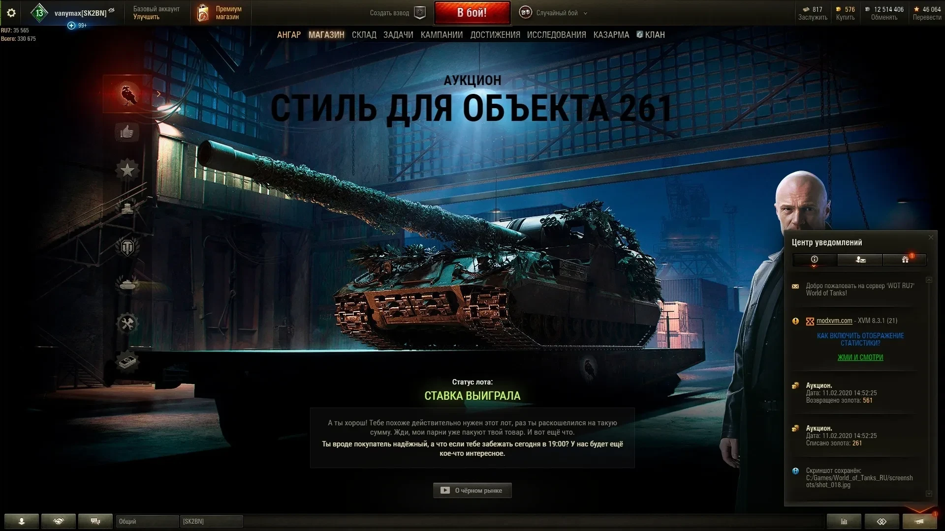 Чёрный рынок 2020 лот 12: Стиль для Объекта 261 в World of Tanks