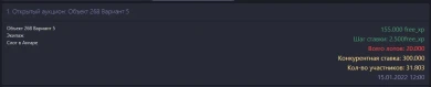 Конкурентная ставка на танк Объект 268 вариант 5 в World of Tanks