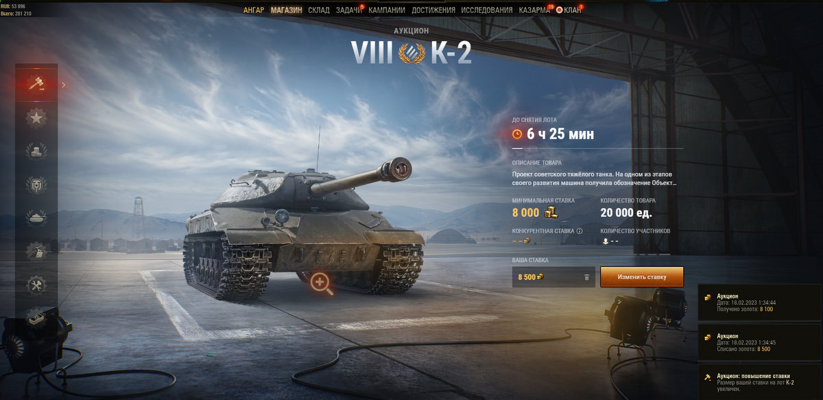 Второй день Зимнего Аукциона 2023 в Мире танков завершился