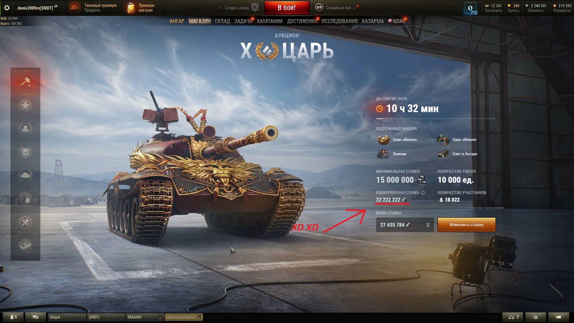 Зимний Аукцион МТ RUBY 2023 (1 день): Танк Царь обезьян (Китай, СТ-10, акционный).