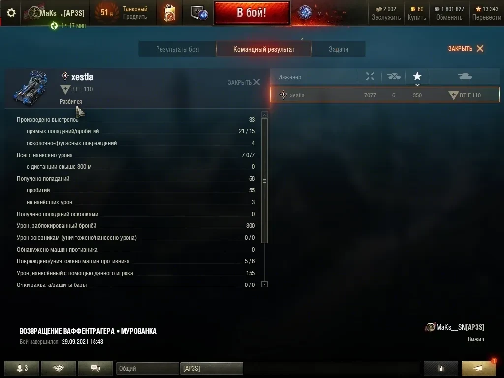 Баг в послебоевой статистике если играть на Blitzträger auf E 110.