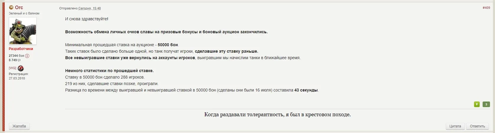 * Таких ставок было сделано больше одной, но танк получат игроки, сделавшие эту ставку раньше.