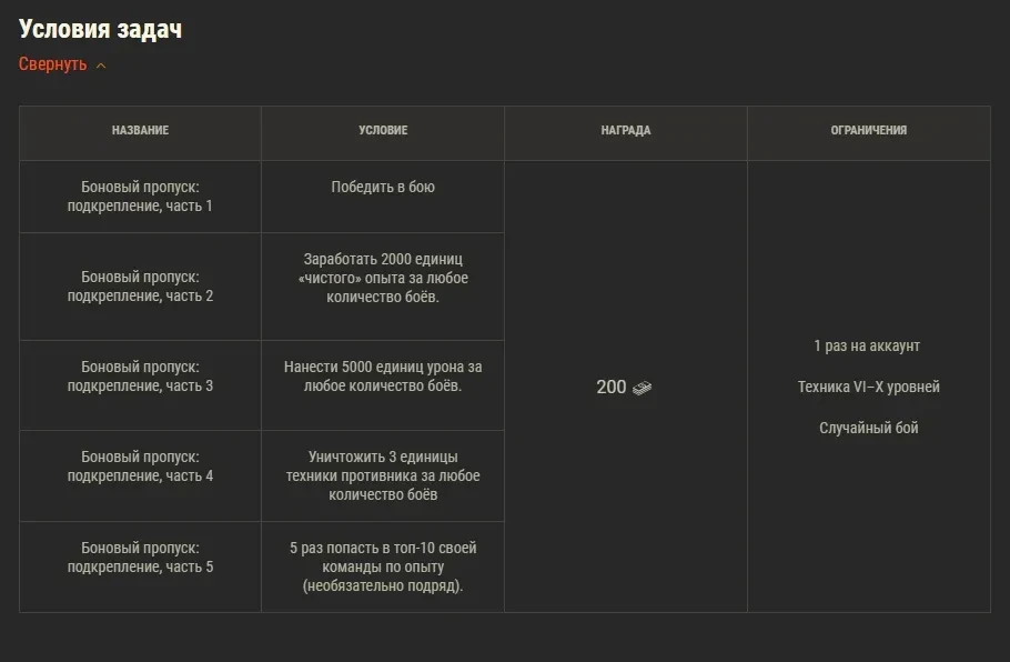 * Цепочка боевых задач на боны, которая позволяет заработать до 1 000 бон.
