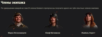 По завершении каждой из глав IX сезона Боевого пропуска вы получите одного из трёх опытных членов экипажа.