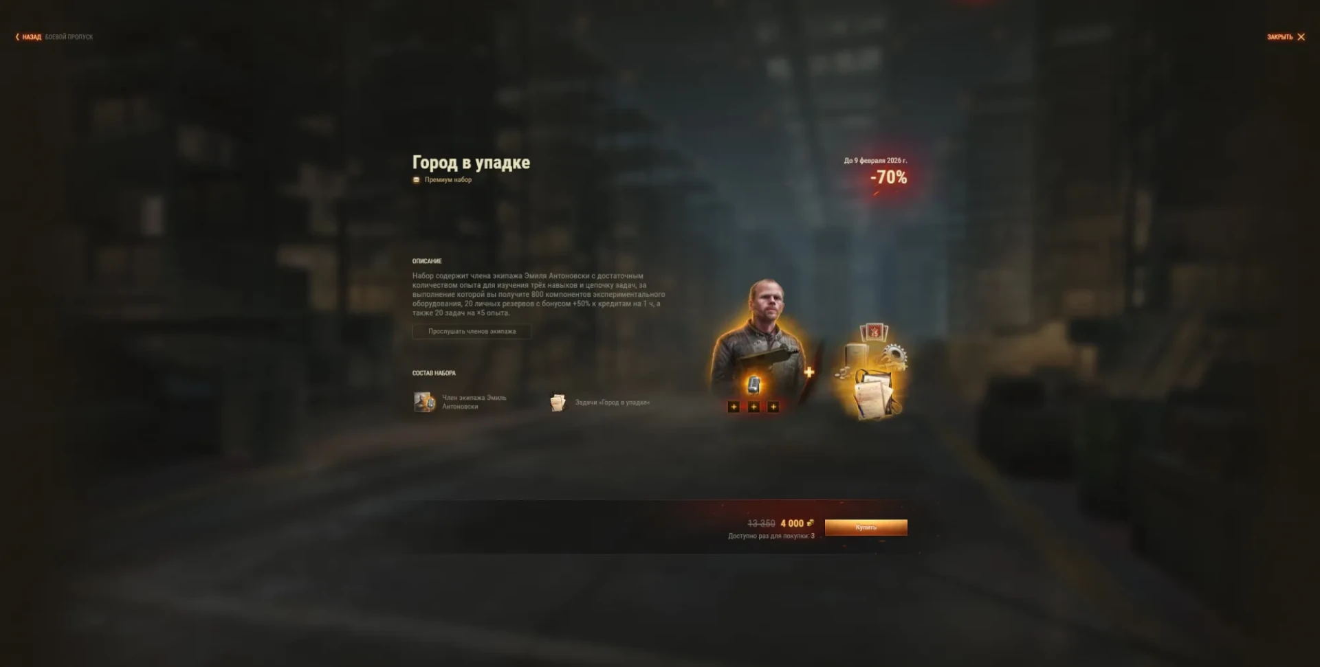 Наборы содержат уникальных членов экипажа, элементы кастомизации, резервы, боевые задачи на x5 опыта и специальные задачи на доп. имущество.